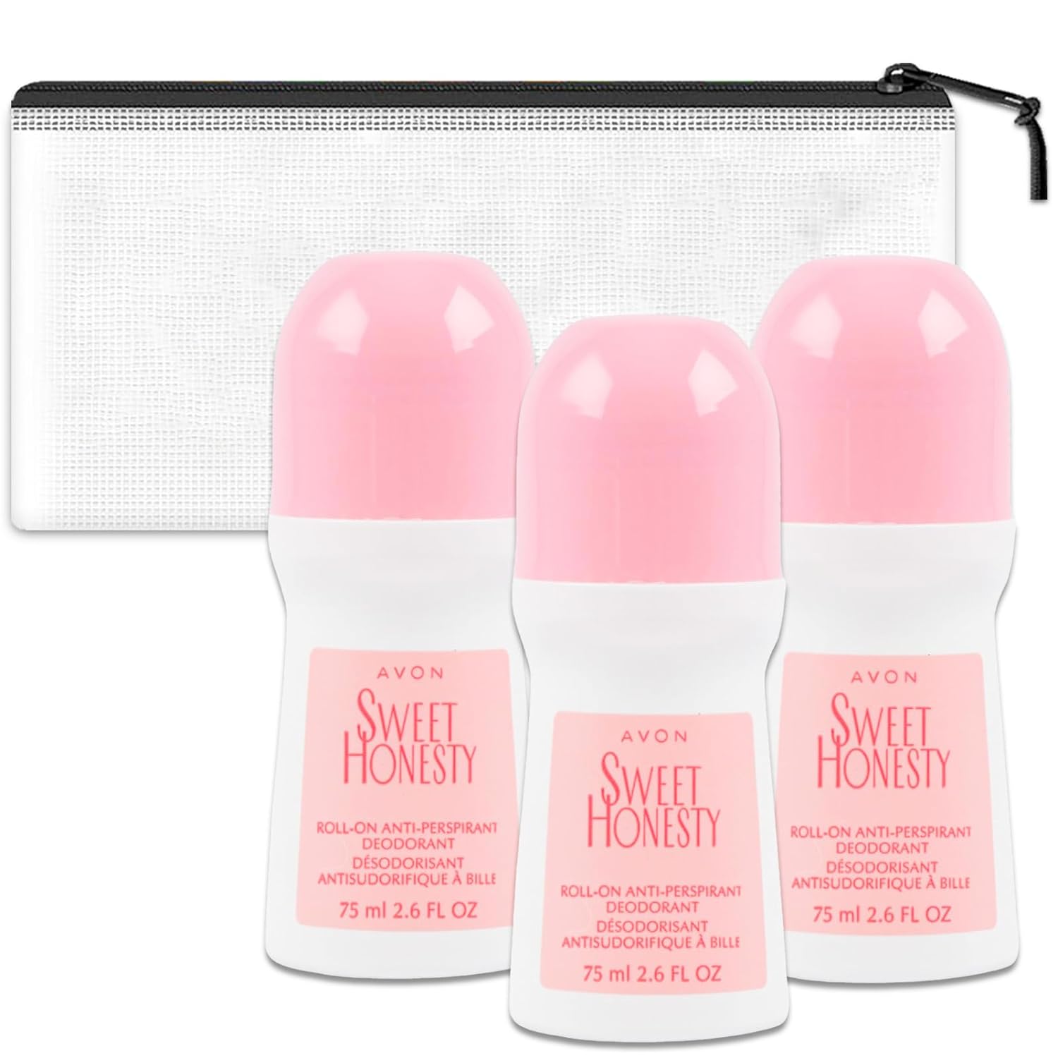 Avon Sweet Honesty Roll-On Deodorant for Women Travel Pack - 3 Pack Avon Roll-On Anti-Perspirant Deodorant Travel Size 2.6 Oz Bundle with Bag | Travel Size Deodorant for Women