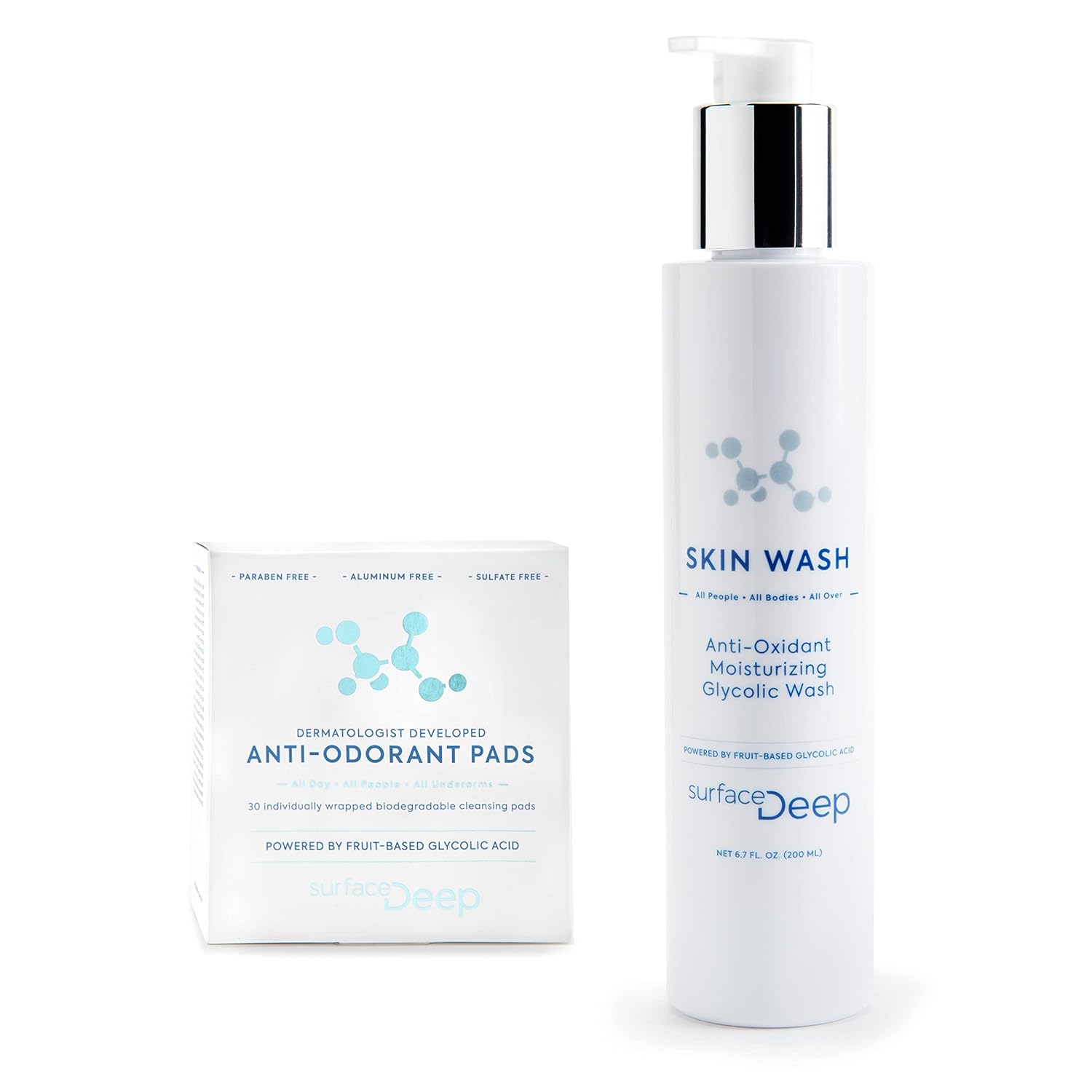 Maximize your protection against odor starting with Surface Deep Skin Wash in the shower, then after drying, follow with Surface Deep Anti-Odorant Pads.