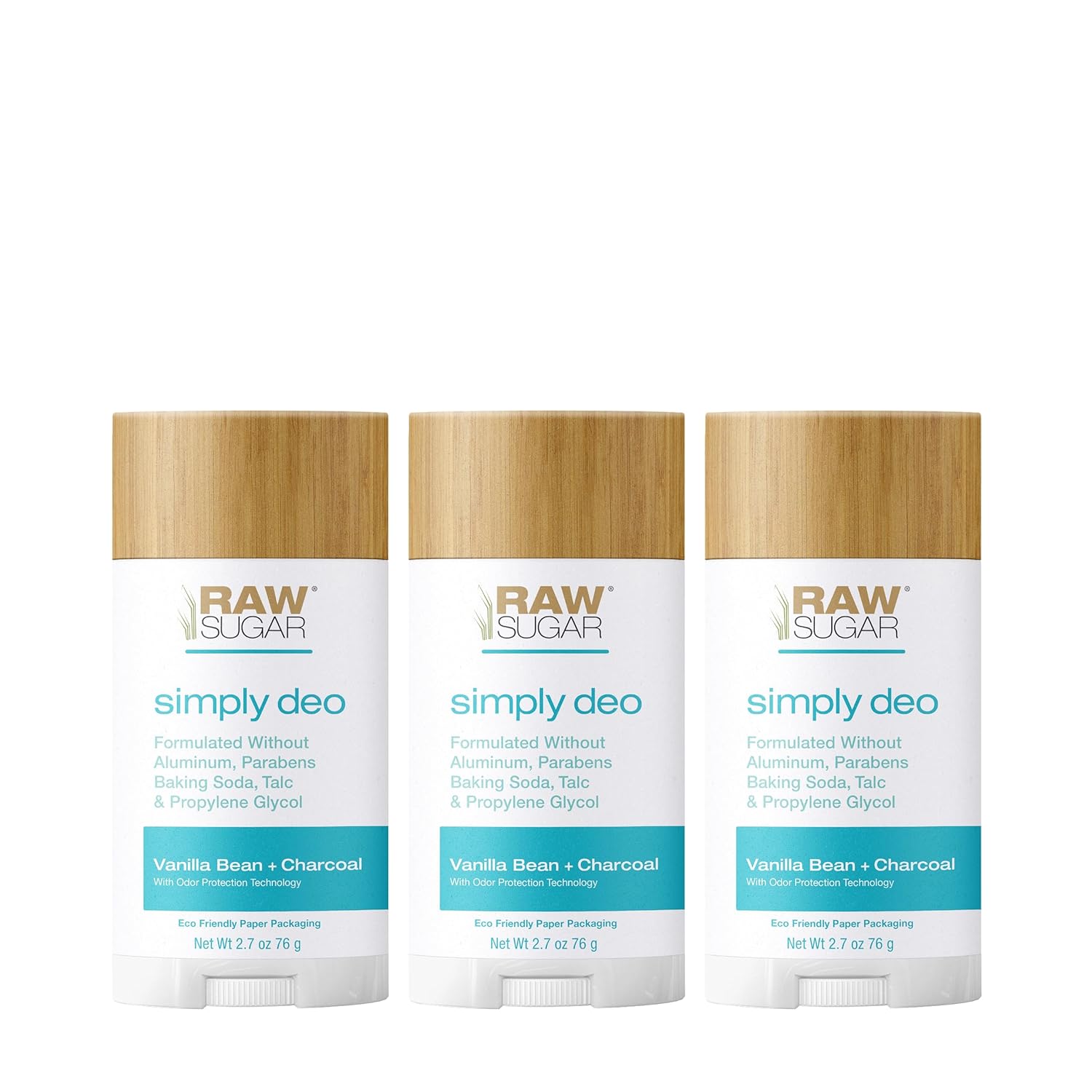 Deodorant Done Right!: Say hello to Raw Sugar Aluminum Free Deodorant, and wave goodbye to unwanted odors. Experience clean protection with our Odor Protection Technology. Natural deodorant bundle includes 3 Vanilla Bean & Charcoal stick deodorants