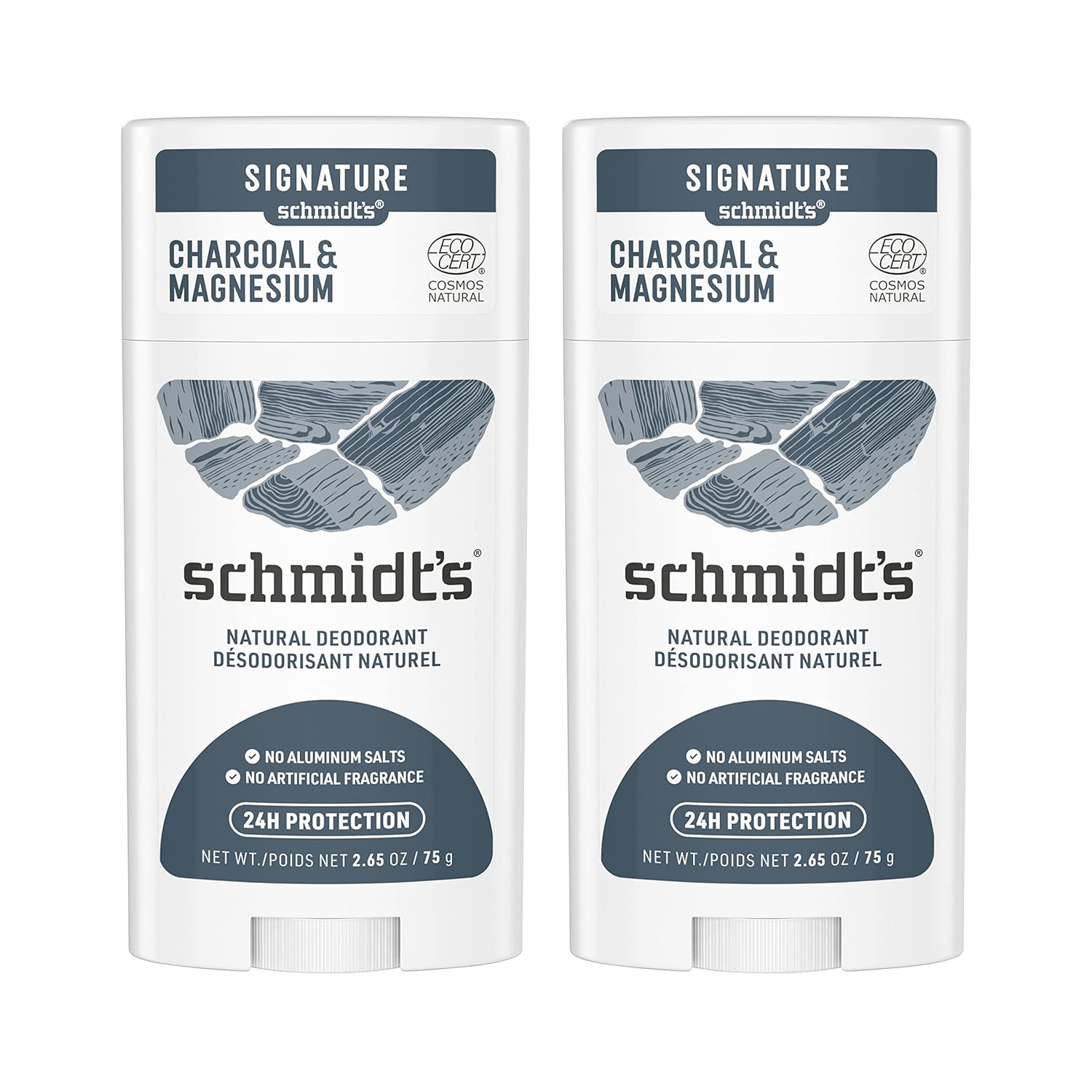 Schmidt's Aluminum Free Natural Deodorant Charcoal & Magnesium 2 Count For Women and Men, with 24 Hour Odor Protection, Certified Cruelty Free, Vegan Deodorant, 2.65oz