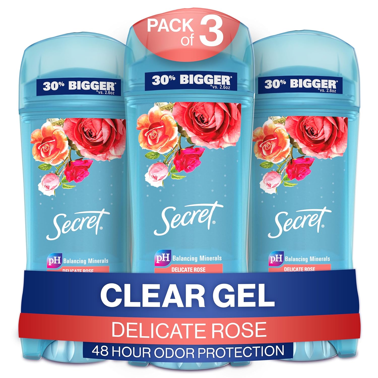 Secret Antiperspirant and Deodorant Women, Delicate Rose Scent, Clear Gel 3.4 oz (Pack of 3)