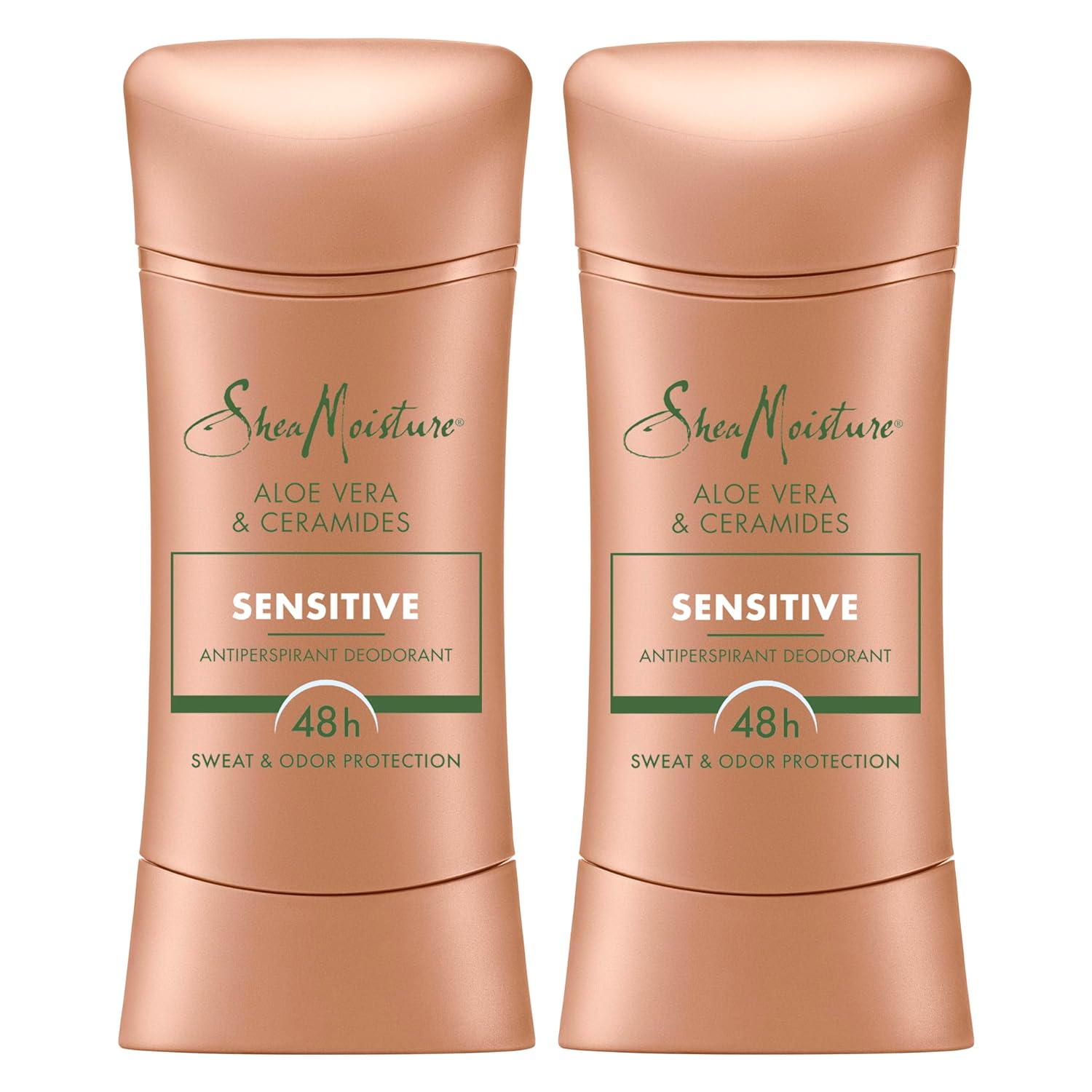 SheaMoisture Antiperspirant Deodorant Stick Sensitive Aloe Vera & Ceramides 2 Count for 48HR Sweat & Odor Protection with No Parabens & No Mineral Oil 2.6 oz