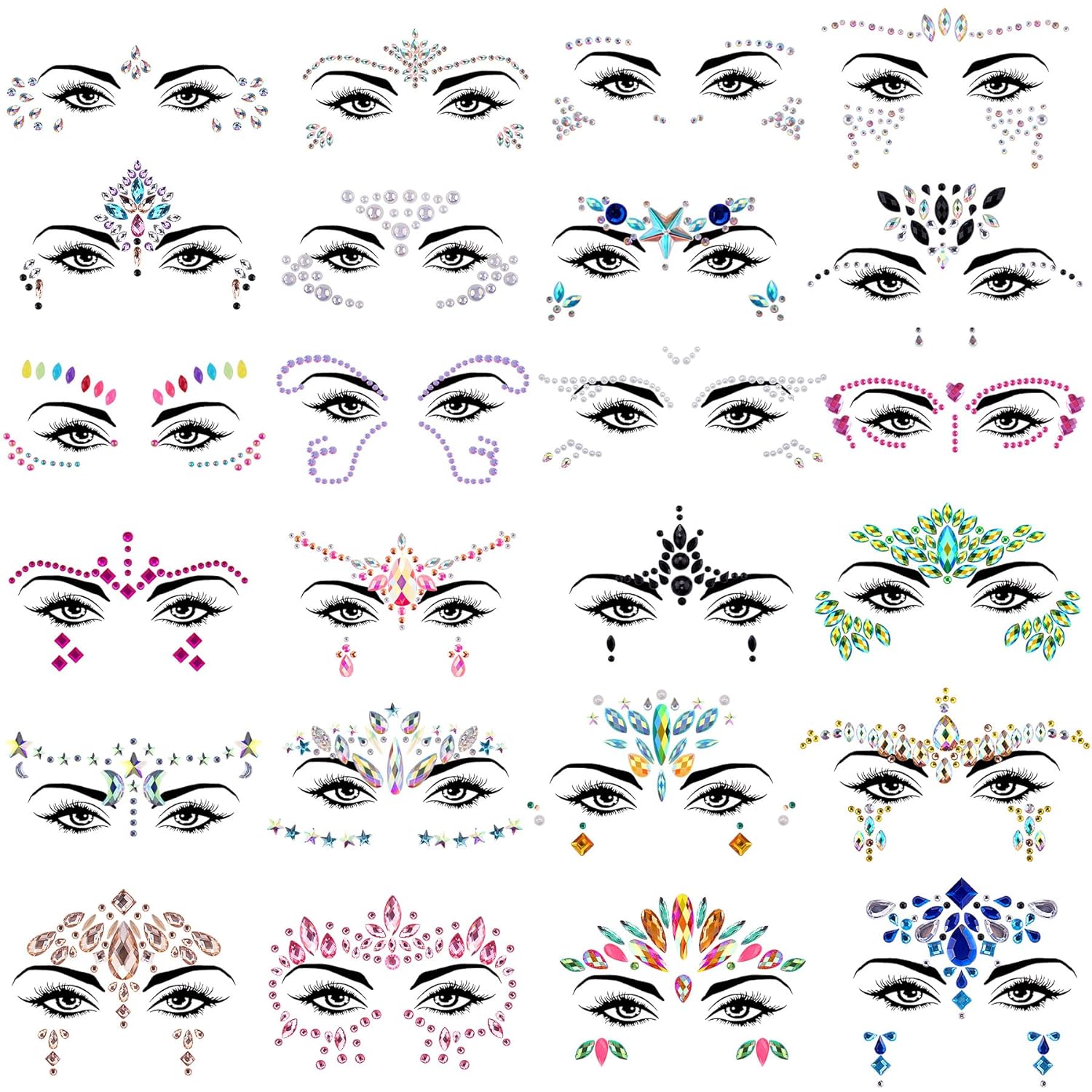 SIQUK 24 Sets Face Jewels Mermaid Face Gems Sticker Face Crystal Rhinestone Face Jewel for Festival Rave Carnival Party