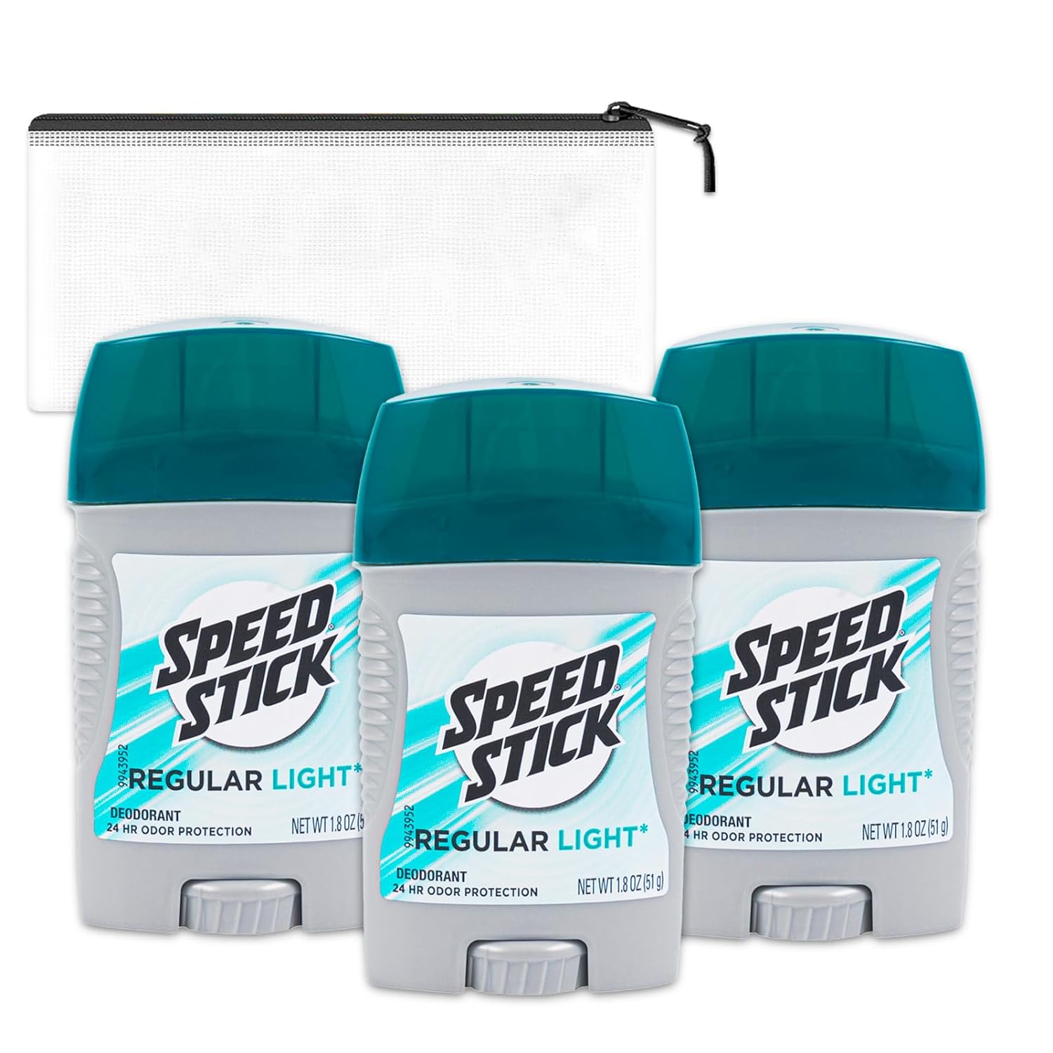 Speed Stick Regular Light Deodorant for Men Travel Pack -- 3 Pack Speed Stick Deodorant Travel Size 1.8 Oz Bundle with Bag | Travel Size Deodorant Men