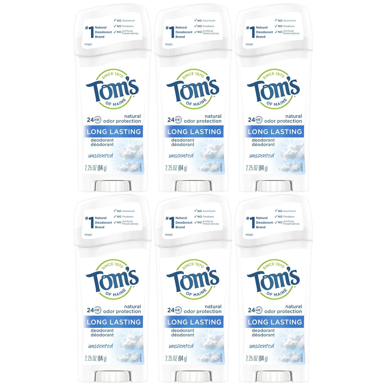 24 HOUR ODOR PROTECTION: Contains 6 to 2.25 ounce sticks of unscented, long lasting natural deodorant; Toms deodorant uses odor fighting hops to provide 24 hour odor protection