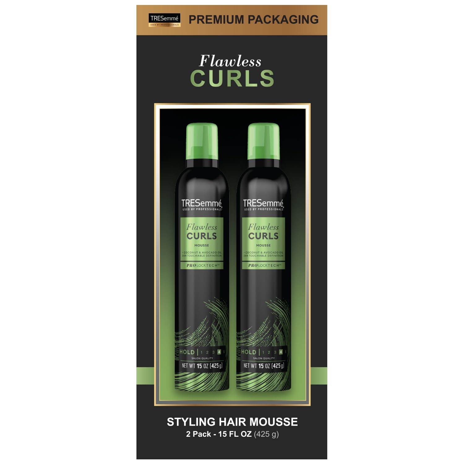 TRESemmŽ Flawless Curls Mousse with Coconut and Avocado Oil, Provides Extra Hold in a Lightweight Formula, Paraben Free and Alcohol Free, Leaves Curls Soft & Bouncy, 2 pk - 15 oz each