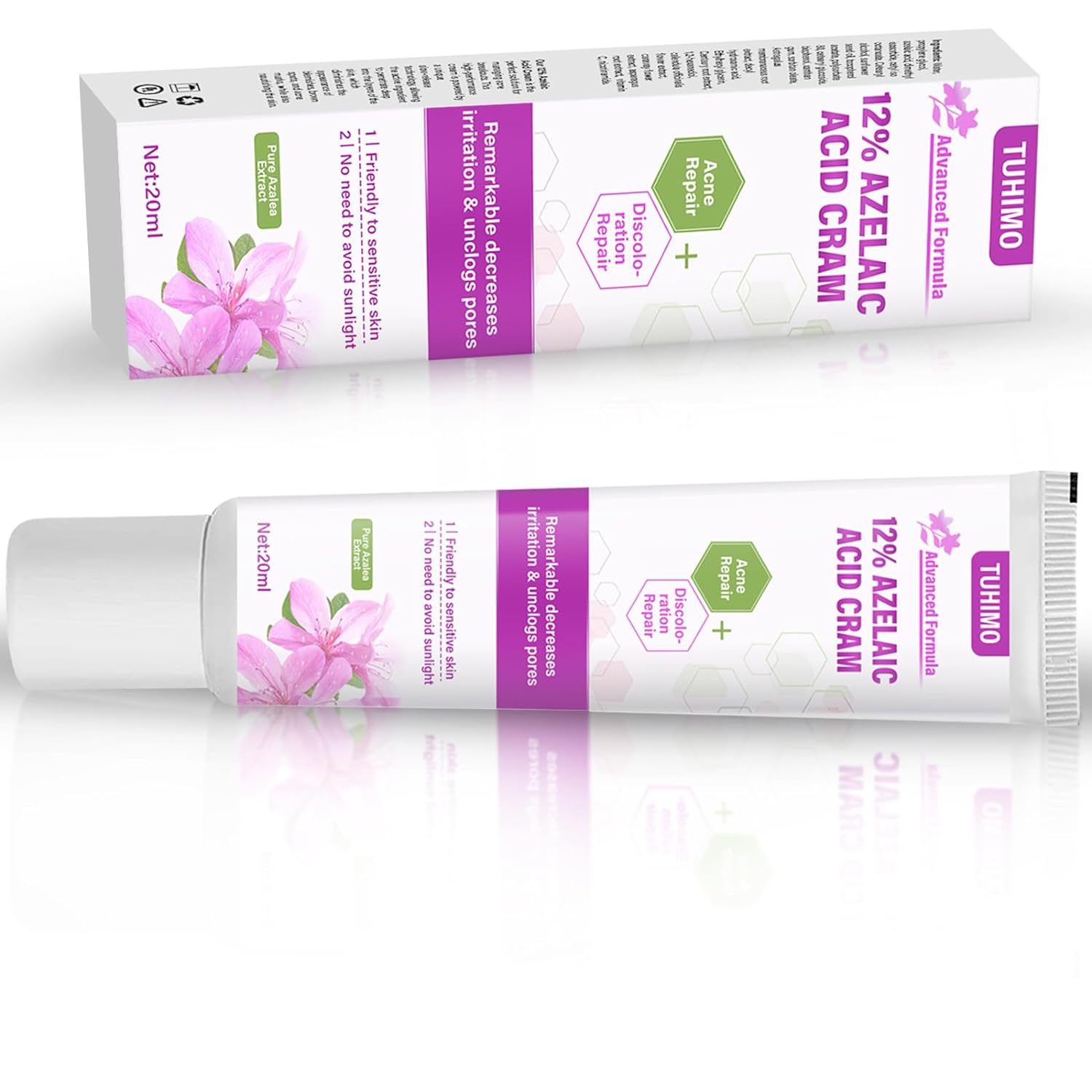 TUHIMO Azelaic Acid 12% Facial Cream, Rosacea Treatment for Face, for Redness Relief Face, Pimple Pigmentation Blackhead, Balance Excess Sebum, Clarify Skin, Soothe Irritation