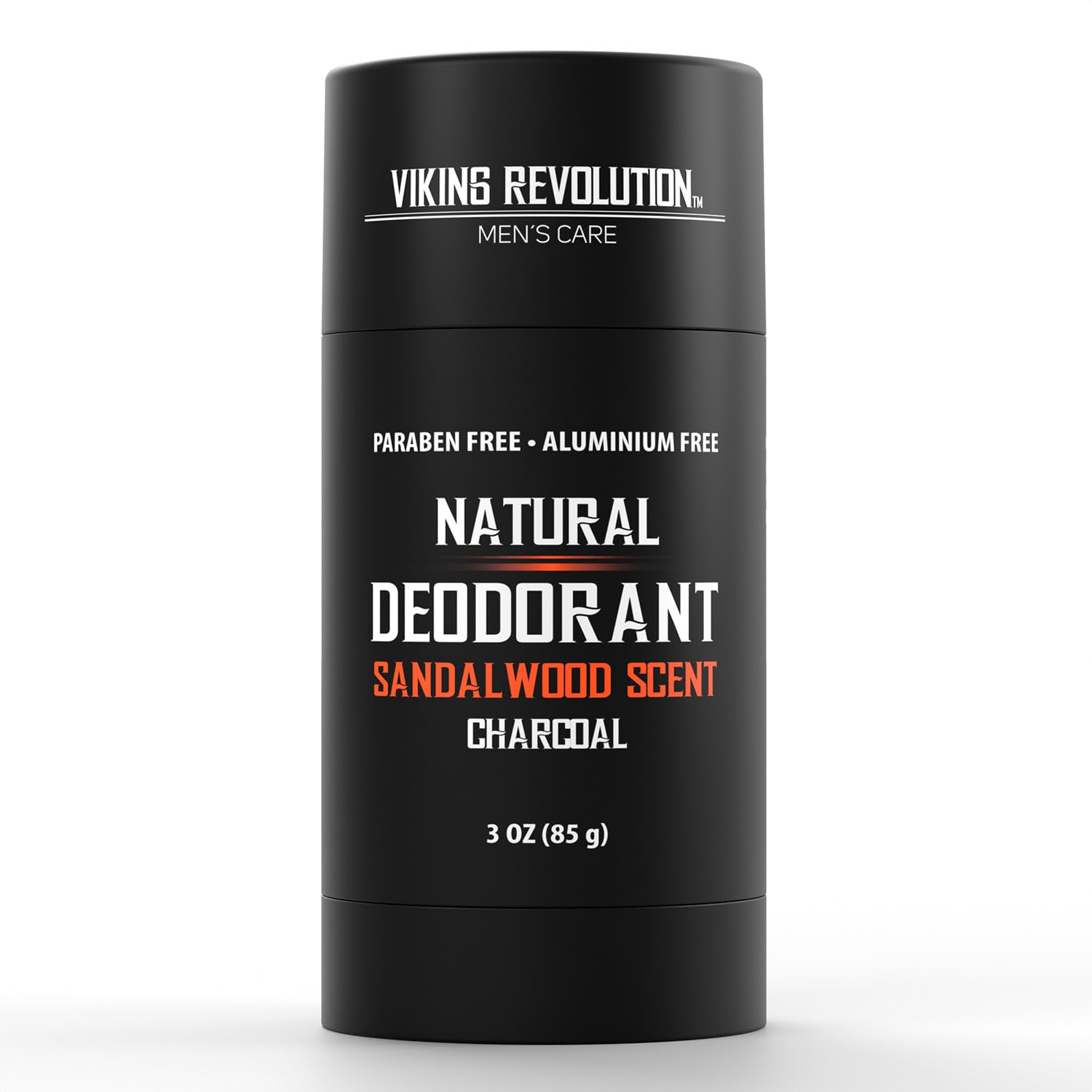 Viking Revolution Sandalwood Natural Deodorant for Men - With Shea Butter, Coconut Oil, Baking Soda, Beeswax - Aluminum-Free Charcoal Deodorant (3oz)